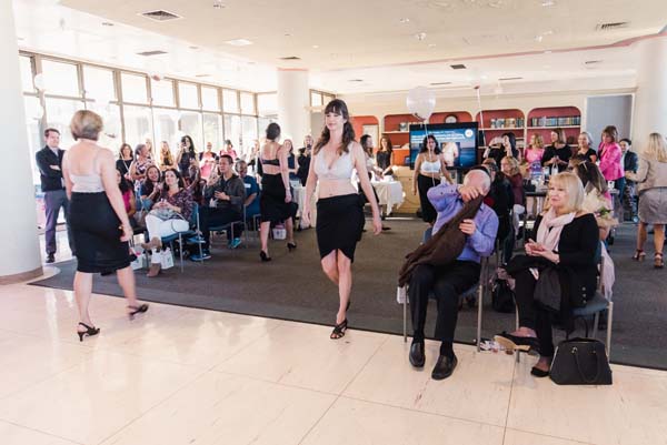 Most special was a live fashion show featuring the inaugural debut of Everviolet, a beautiful lingerie and loungewear collection that nurtures the changes in a woman’s body following treatment for breast cancer. Models, trained by professional model coach Charleston Pierce, were breast cancer survivors (many of whom were patients of Dr. Horton) or active breast cancer patients strutting their stuff on the runway.