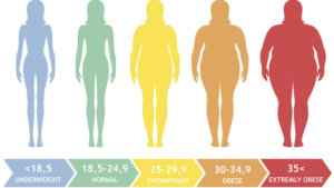 Obviously, a BMI of 22 is healthy. Having a BMI under 18 indicates that a patient is underweight and potentially malnourished or suffering with an eating disorder, and a BMI over 30 indicates obesity. Now, there are exceptions to every rule, such as being very slight-framed with little muscle mass or “big-boned” with very dense muscles (like my husband!).