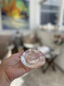Chronic folding of the implant surface can eventually cause weakness in that area and result in a “fold flaw” in the implant shell, with subsequent and implant “rupture”. I dislike the term rupture because if a modern silicone breast implant shell were to break, the implant does not explode! Any silicone material tends to stay within the pocket of the breast and remain “intracapsular” – perhaps the term “implant shell fracture” would be more accurate. The risk of fold flaw with muscle contraction is one reason I prefer implant placement on top of the muscle (subglandular or prepectoral placement).