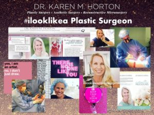 (Since I think in hashtags now), I added hashtags to these descriptions, inspired by the #ilooklikeasurgeon campaign initiated by the Association of Women Surgeons to increase awareness of women surgeons, and the more recent #ilooklikeaplasticsurgeon trend. As a Board Certified Plastic Surgeon, I spend most hours of each day taking care of others using Plastic Surgery tools and techniques. Therefore, #ilooklikea PLASTIC SURGEON!
