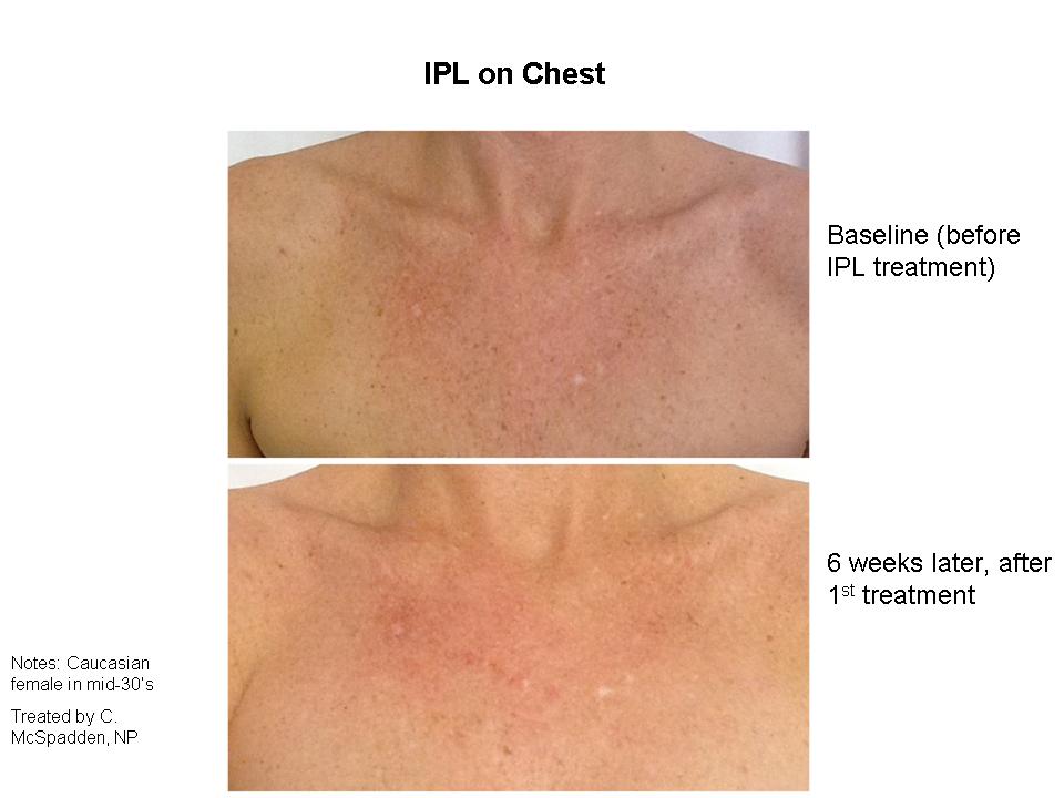 IPL (intense pulsed light) treatments can lessen many of the changes of sun, including red and brown spots, and can help rejuvenate the overall skin appearance. A series of chemical peels can also create increased cellular turnover and refresh the skin from the bottom up, helping to treat sun damage and aging.