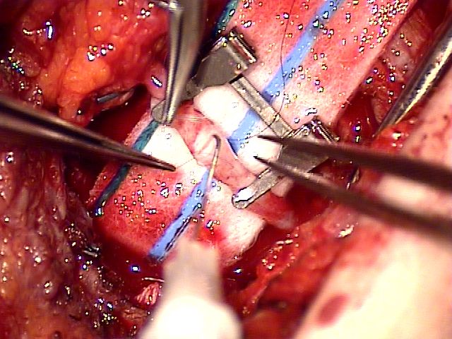 Blood vessels being reconnected under the operating microscope during a Reconstructive Microsurgery procedure