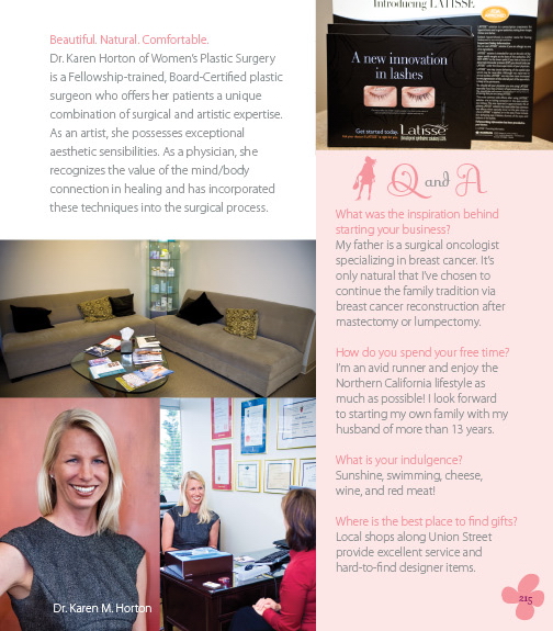 Dr. Karen Horton is featured in New Beauty Magazine as a prominent female plastic surgeon in the San Francisco Bay area.